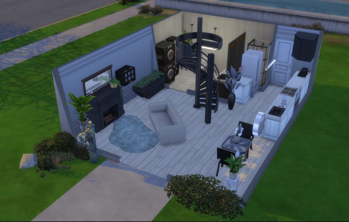 Если дома действительно созданы билдером из The Sims, автор явно разбирается в деле – использует предметы из широкого спектра DLC и даже популярный мод со спиральной лестницей в некоторых мини-домах.
