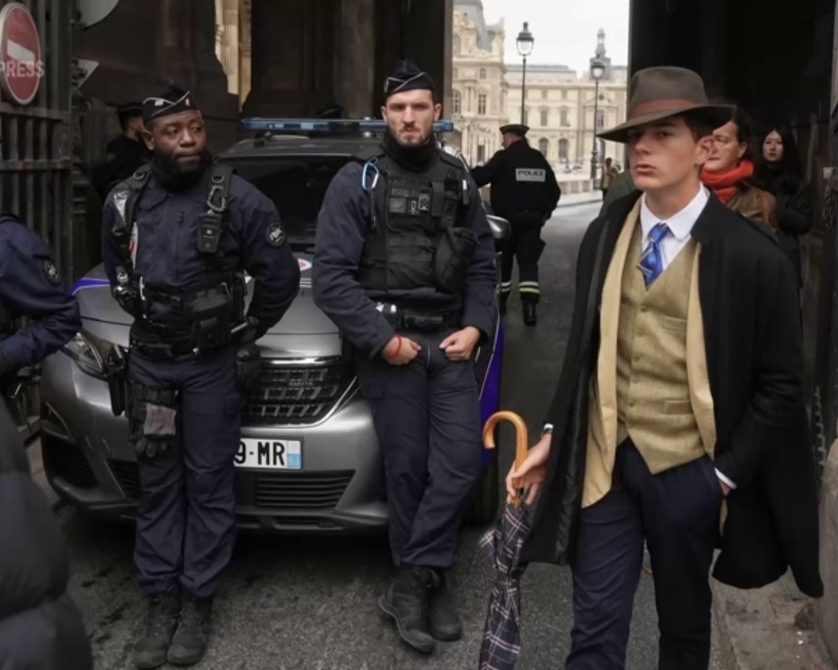 Тем не менее, изображение превратило безымянного прохожего в интернет-миф – мимолётный момент, заставивший мир поверить, что в Лувре всё ещё есть детективы в плащах, преследующие похитителей драгоценностей.