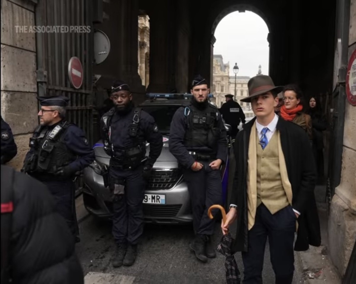 Элегантно одетый мужчина возле Лувра стал интернет-воплощением настоящего детектива после ограбления музея, но фотограф, запечатлевший кадр, утверждает, что это был просто случайный прохожий.