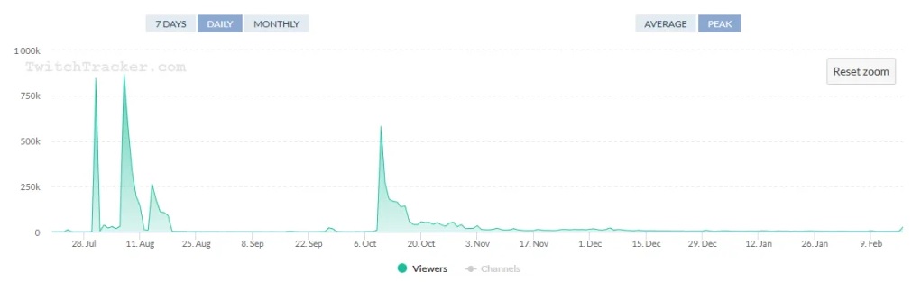 За 24 часа после выхода второго сезона количество зрителей выросло примерно с 3.000 до 27.000, что разместило Battlefield 6 на 75-м месте по просмотрам в Twitch. Возможен небольшой рост в выходные, когда потребление контента по Battlefield увеличивается примерно на 30%, но значительных изменений не ожидается.