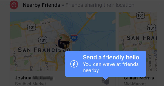Внеся это изменение, Facebook переместила функцию «Друзья поблизости» в более заметное место на главной странице социальной сети — раньше она была спрятана где-то в разделе «Больше». Компания также запустила новую функцию под названием Wave, которая начала тестироваться в сервисе ранее в этом месяце. Увидев кого-нибудь из знакомых в разделе «Друзья поблизости», пользователь может «помахать» ему и тем самым дать знать о своём присутствии где-то неподалёку. Если этот человек захочет, то он может ответить пользователю и назначить ему встречу. «Это предназначено для того, чтобы дать людям больше возможностей выражать себя и помогать друзьям взаимодействовать друг с другом новыми весёлыми и лёгкими способами», — заявил ранее представитель Facebook.