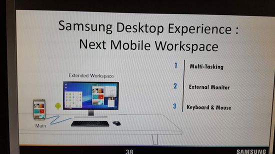 Новый флагманский смартфон Samsung Galaxy S8 можно будет превратить в полноценный компьютер. Такая возможность описана в утекшем в Сеть слайде презентации «Samsung Desktop Experience».