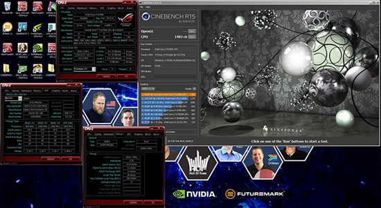 Среди других заметных достижений последних дней выделим рекорд Даниэля «Dancop» Шира в популярном бенчмарке Cinebench R15 для систем на основе четырёхъядерных процессоров — 1483 очка. Чип Core i7-6700K прошёл тест на частоте 6641 МГц без отключения ядер и технологии Hyper-Threading. Комплект оперативной памяти GALAX DDR4 при этом функционировал в режиме DDR4-4084 с задержками 12-11-11-28.