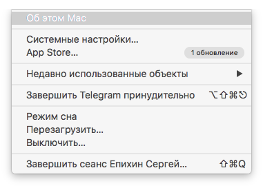 1) Откройте меню «Apple», выберите пункт «Об этом Mac».