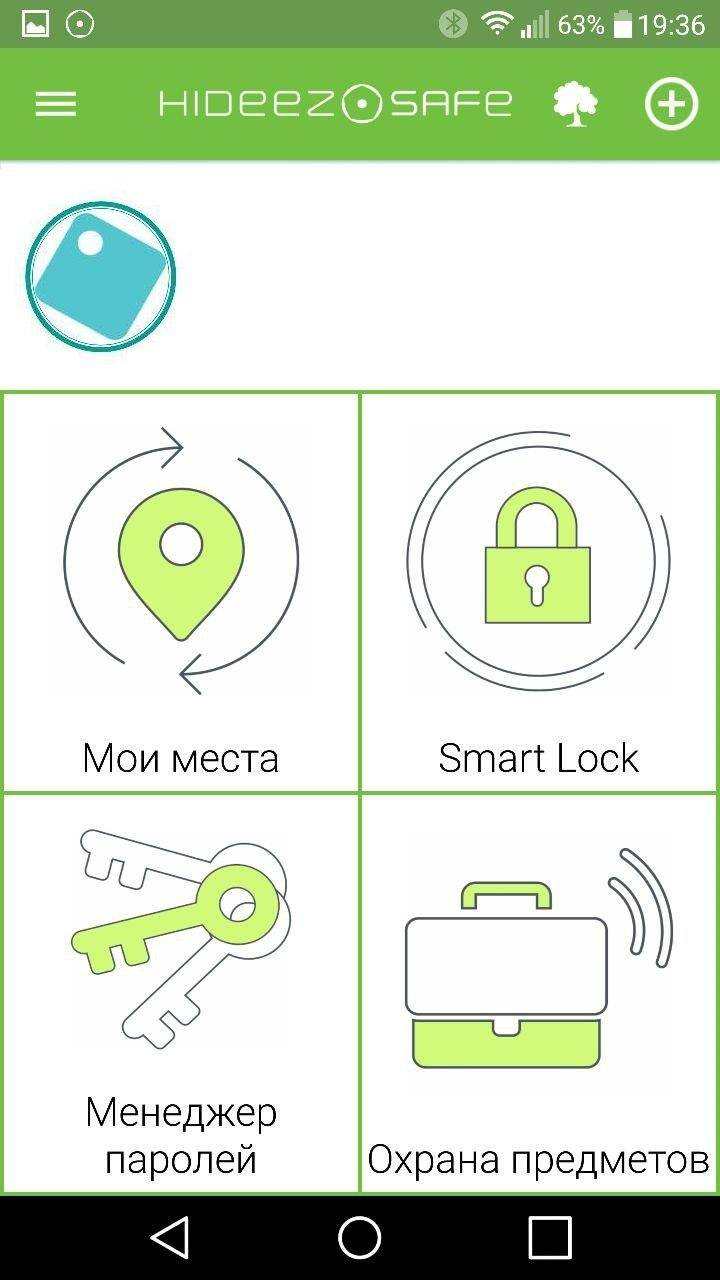 Этап регистрации и сопряжения завершен. Перед нами основное меню состоящее из четырех пунктов: Мои места, Smart lock, Менеджер паролей и Охрана предметов. Для их работы понадобится несколько системных разрешений.