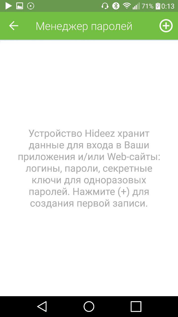 Менеджер паролей. Главная функция устройства. Позволяет вносить данные для различных web-ресурсов и приложений (логины, пароли и секретные ключи для одноразовых паролей), а также настраивать режим разблокировки (автоматически или по нажатию клавиши). Дополнительные требования: включение функции в пункте “Спец. возможности”.