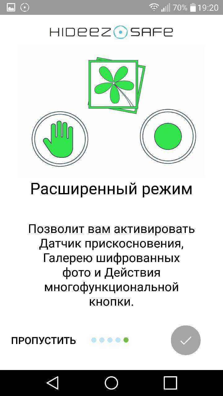 Помимо вышеописанных функций, во вкладке “Настройки” вы найдете пункт “Расширенный режим”, при активации которого на главном экрана приложение появятся ещё четыре дополнительных функции: датчик прикосновения, галерея, действия и уведомления.