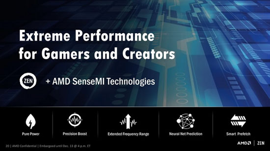 Глава AMD Лиза Су (Lisa Su) подтвердила, что архитектура Zen и её продолжения должны будут просуществовать на рынке как минимум три года. В настоящее время запуску первого поколения Zen со стороны Intel по мнению AMD ничто не угрожает — по крайней мере, в секторе потребительских процессоров «красные» явно догонят «синих», оправдав многолетние ожидания поклонников бренда AMD и любителей компьютерных игр. Выпуск Zen+ должен лишь закрепить отвоёванные компанией позиции. Уже в первом поколении процессоры Ryzen получат более 100 встроенных сенсоров, постоянно отслеживающих внутренние параметры процессора с точностью до милливольта, милливатта и одного градуса и помогающие обеспечивать максимальную производительность при минимальном энергопотреблении. Частота ядер будет регулироваться динамически шагами по 25 МГц с частотой до нескольких КГц (тысяч раз в секунду), а технология XFR, распознав усиленную систему охлаждения, будет автоматически повышать верхний предел разгона для вышеупомянутой технологии Precision Boost. Технологии «умного предсказания», Neural Net Prediction и Smart Prefetch, также будут совершенствоваться в процессе разработки поколения Zen+, а затем и Zen++; впрочем, у третьего поколения Zen официального имени пока нет.