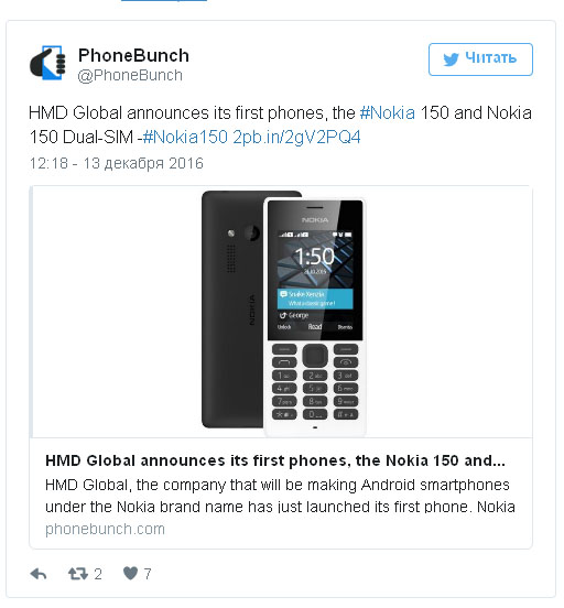 Финская компания HMD Global, владеющая правами на использование бренда Nokia, анонсировала выпуск двух новых мобильных телефонов — Nokia 150 и Nokia 150 Dual SIM. Об этом сообщает Reuters.