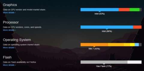 Компания Mozilla Corporation опубликовала статистические данные, в которых раскрываются подробности о технических характеристиках и программном обеспечении компьютеров пользователей настольной версии браузера Firefox. Это не единичный случай, когда разработчики программного обеспечения публикуют информацию о популярных конфигурациях используемого оборудования. Сбору статистики способствуют встроенные в ПО системы телеметрии. Аналогичную информацию также периодически публикуют разработчики компьютерных игр.