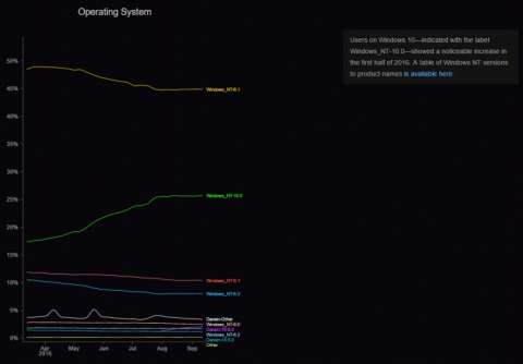 Наиболее распространённые частоты процессоров — от 2,3 до 2,69 ГГц, а объём оперативной памяти в среднем составляет 4 ГБ. Что касается операционных систем, то первое место удерживает Windows 7 с результатом практически в 45%, тогда как Windows 10, несмотря на второе место, получила лишь 27%. Абсолютное большинство программных платформ на сегодняшний день являются 64-битными: их доля составляет 67,7%.