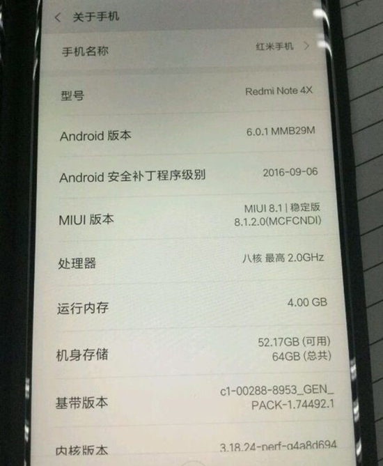 В Сети появились слухи о том, что в ближайшее время Xiaomi анонсирует недорогой смартфон Redmi Note 4X. Судя по имеющемуся изображению устройства, оно оснащено чипсетом Qualcomm Snapdragon 653, 4 ГБ оперативной памяти и встроенным накопителем ёмкостью 64 ГБ. Судя по снимку, у устройства довольно узкие рамки, однако в кадр влез не весь корпус Redmi Note 4X. Позже в Сети появилась информация, что новинка сертифицирована в TENAA, хотя на самом деле это не так (источники дают ссылку на сертификат, ещё летом выданный смартфону Redmi Note 4 с Helio X20 внутри). Ждём новых подробностей о Redmi Note 4X.