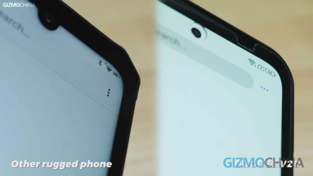 Let’s compare it with other rugged phones featuring LCD screens. It is pretty obvious that there are shadows around the LCD screen of other rugged devices and the black areas are not pure black either. However, the V20 has none of these problems. The colors are vivid and the contrast is high, so you can enjoy a good experience with a high quality screen, even outdoors. A good screen must be protected, the protective glass of Corning Gorilla plus the tempered film is enough to ensure that the screen is not broken when dropped at a height of 1.8 meters. All interfaces are waterproof and it is IP68 and IP69K certified.