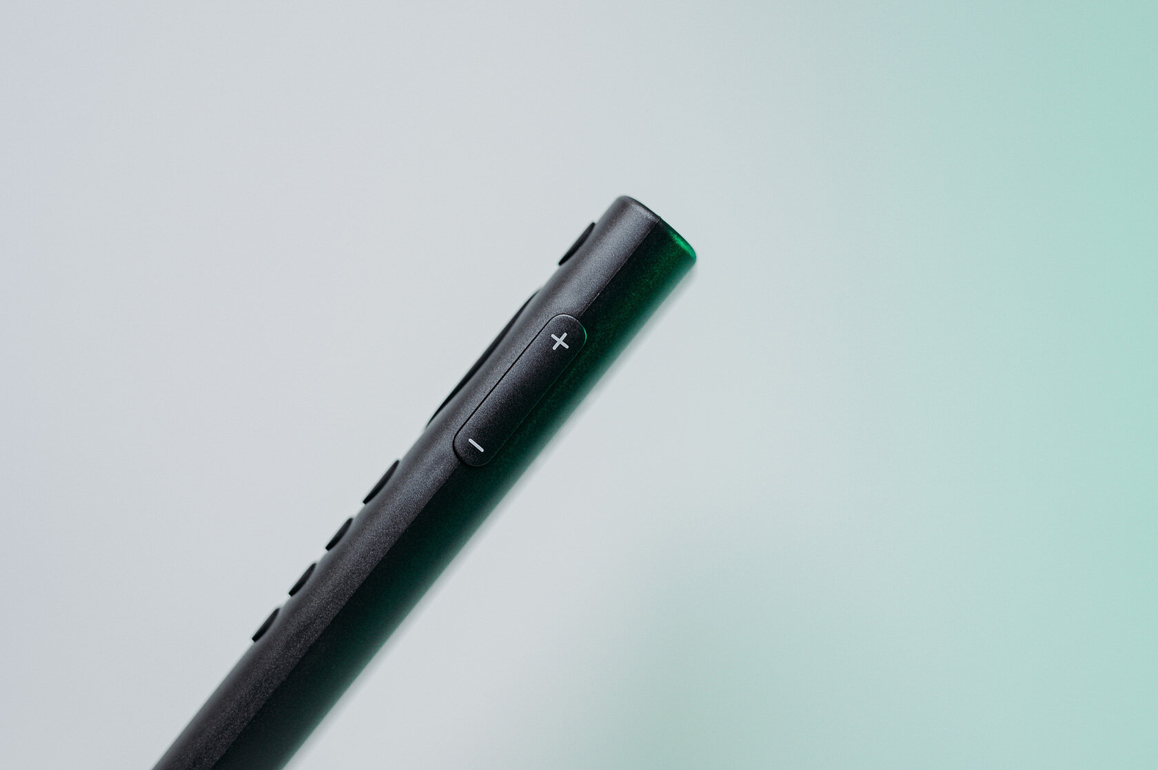 Для SberBox 2 был разработан совершенно новый пульт дистанционного управления, который получил ряд крайне интересных фишек. Например, дизайнеры решили вынести «качельку» регулировки громкости на боковую грань — так же, как на смартфонах.