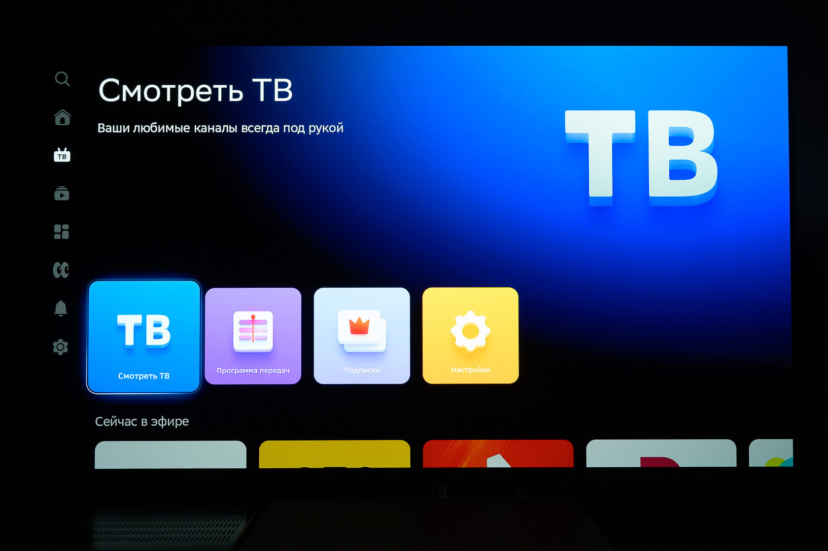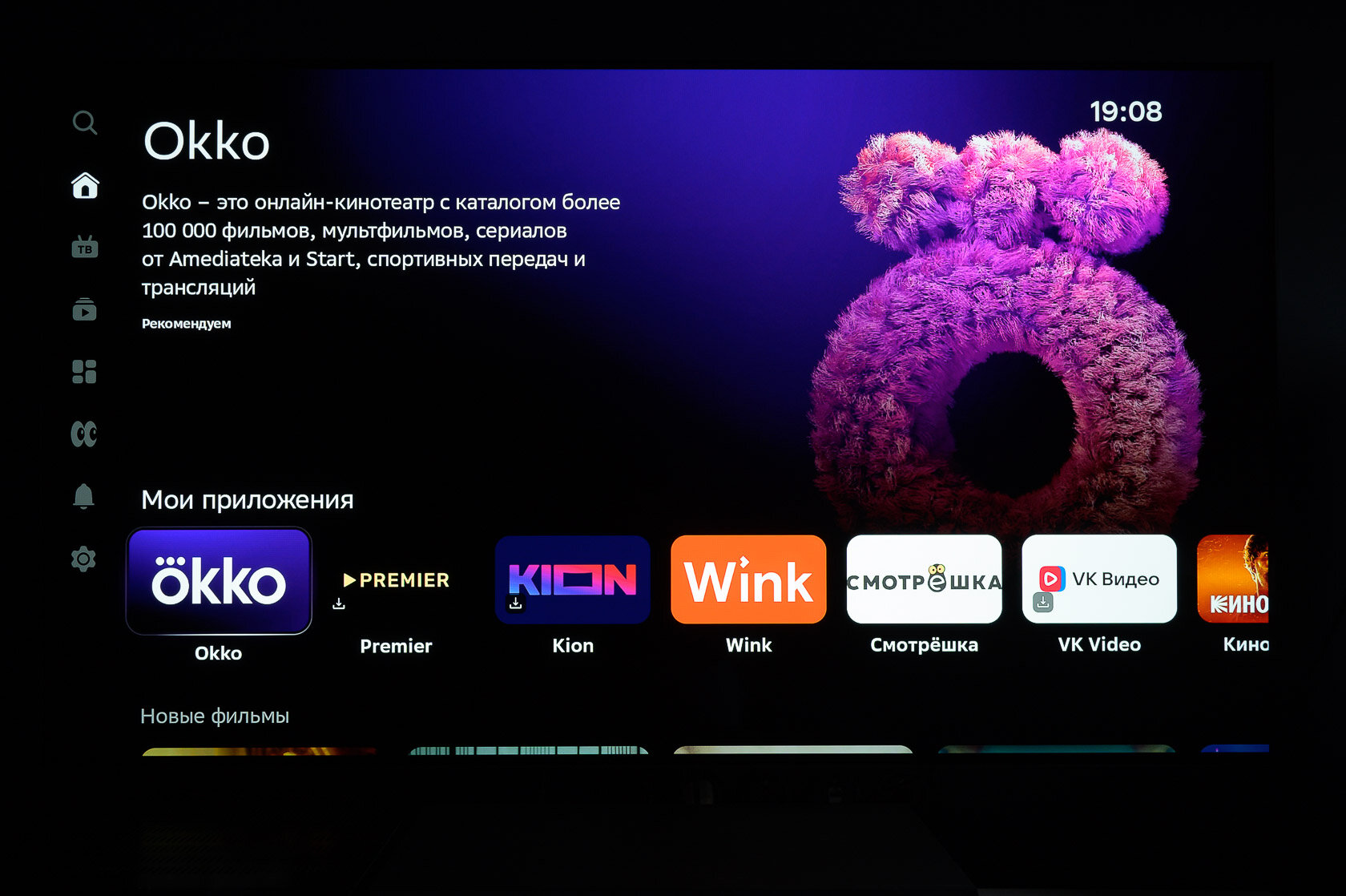 • шесть кнопок для быстрого запуска различных сервисов (онлайн-кинотеатры Okko, «Иви», «Смотрим» и Premier, а также видеохостинг Rutube и кнопка «ТВ» для телевизионных каналов).