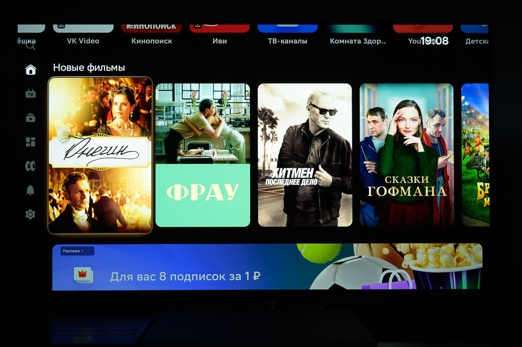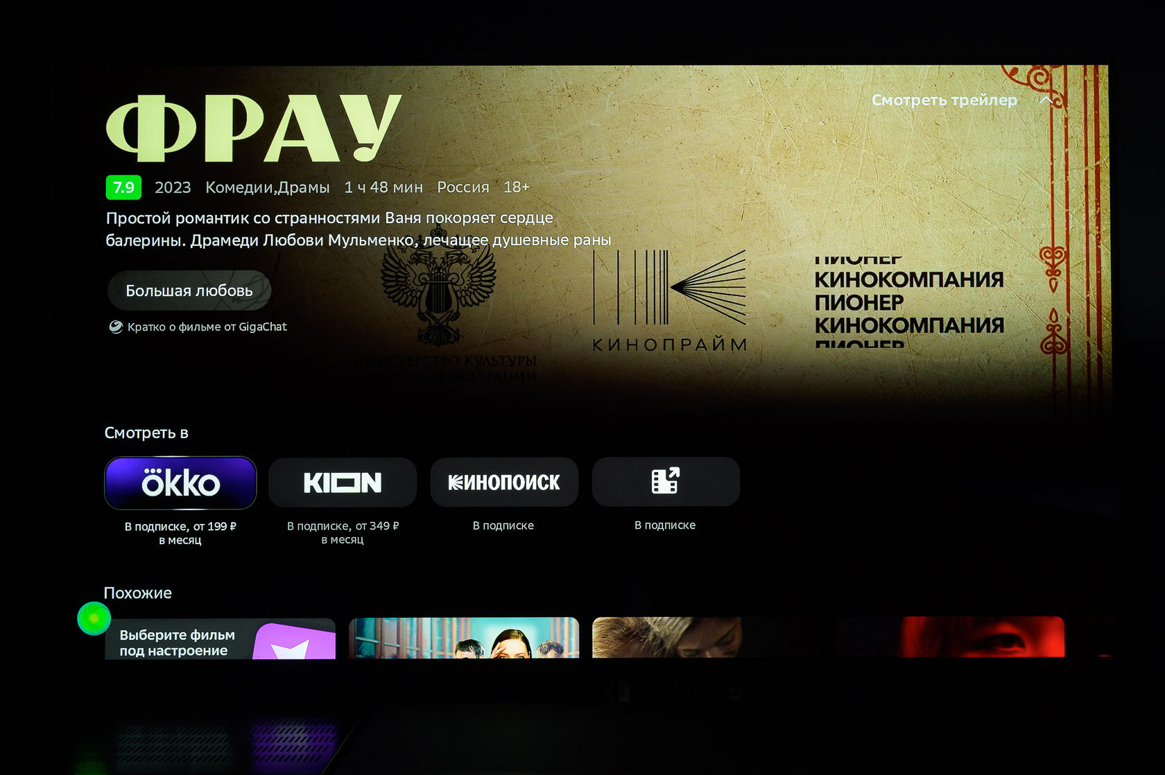 Естественно, с просмотром контента тоже не возникло никаких проблем — гаджет без труда проигрывает фильмы в 4К, позволяет наслаждаться бесчисленными сериалами или смотреть ТВ-каналы с новостями или спортивными передачами. Искать интересный контент благодаря описанию от ИИ стало проще, сквозной поиск экономит море времени, а от «Детской комнаты» с мультфильмами, сказками и играми ребёнка не оторвать.